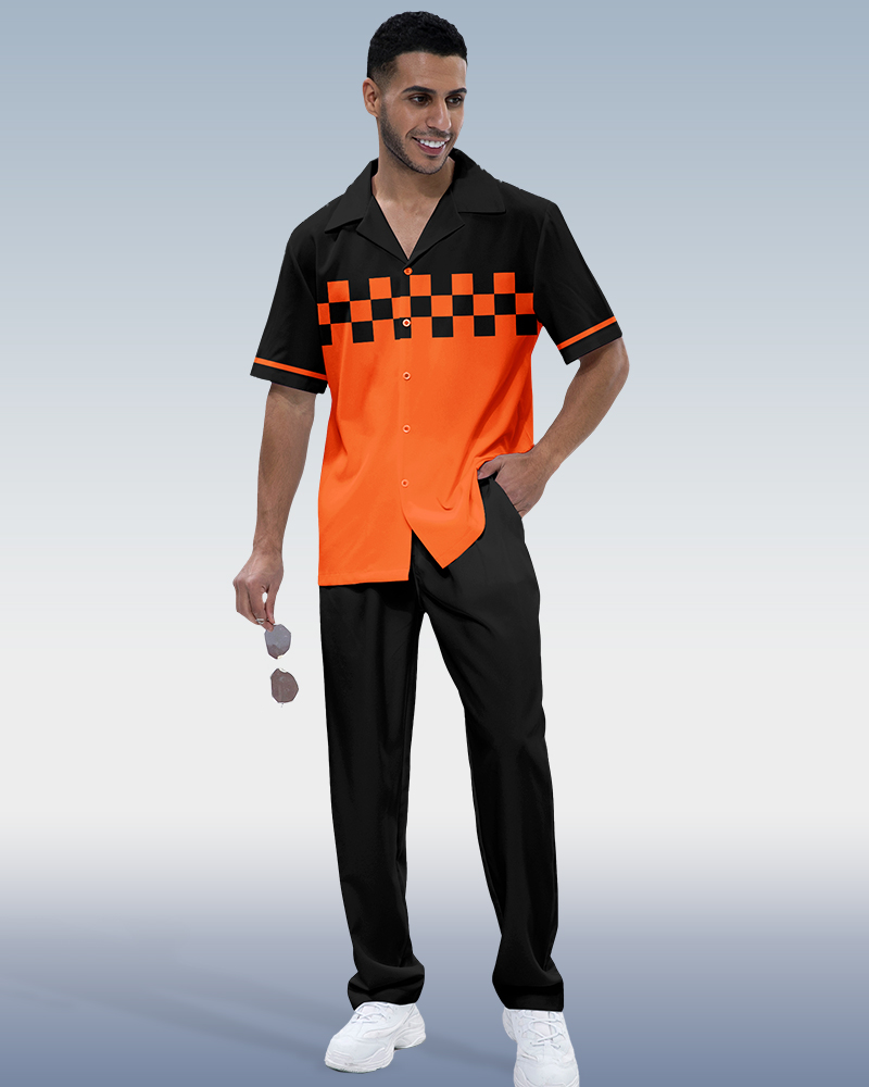 Suitmens Men's Black Plaid Short Sleeve Walking Suit