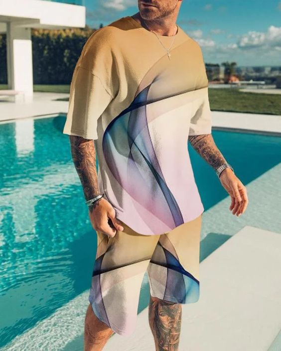 Mid Century Geometric Chest Pocket Short Sleeve Casual Shirt