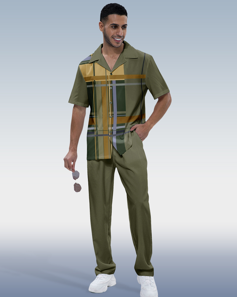 Suitmens Men's Plaid Print Short Sleeve Shirt Walking Set 288