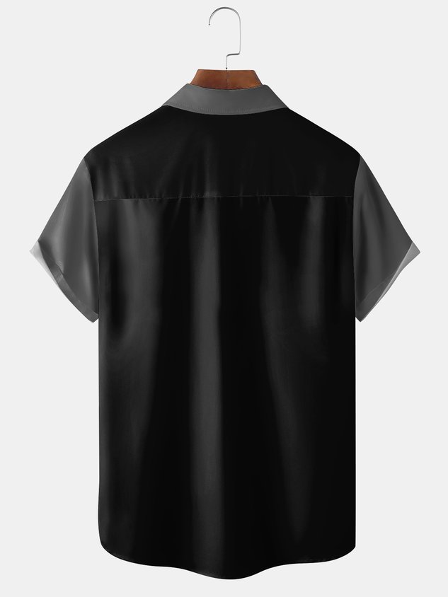 Mens Music Guitar Print Front Buttons Lapel Chest Pocket Loose Casual Hawaiian Shirt