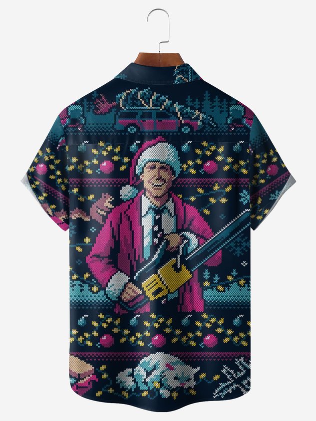 Christmas Chest Pocket Short Sleeve Casual Shirt