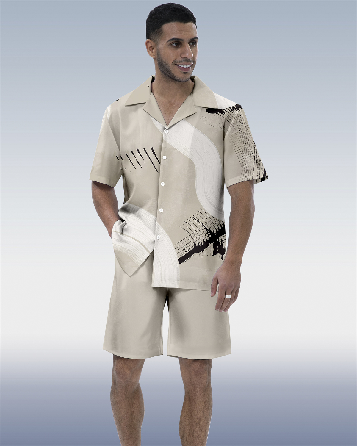 Suitmens Men's Geometric Abstract Art Short Sleeve Shirt Set 211
