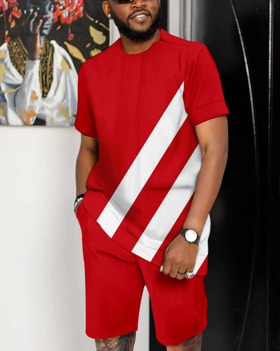 Suitmens Men's Casual Diagonal Stripe Shorts Set 06