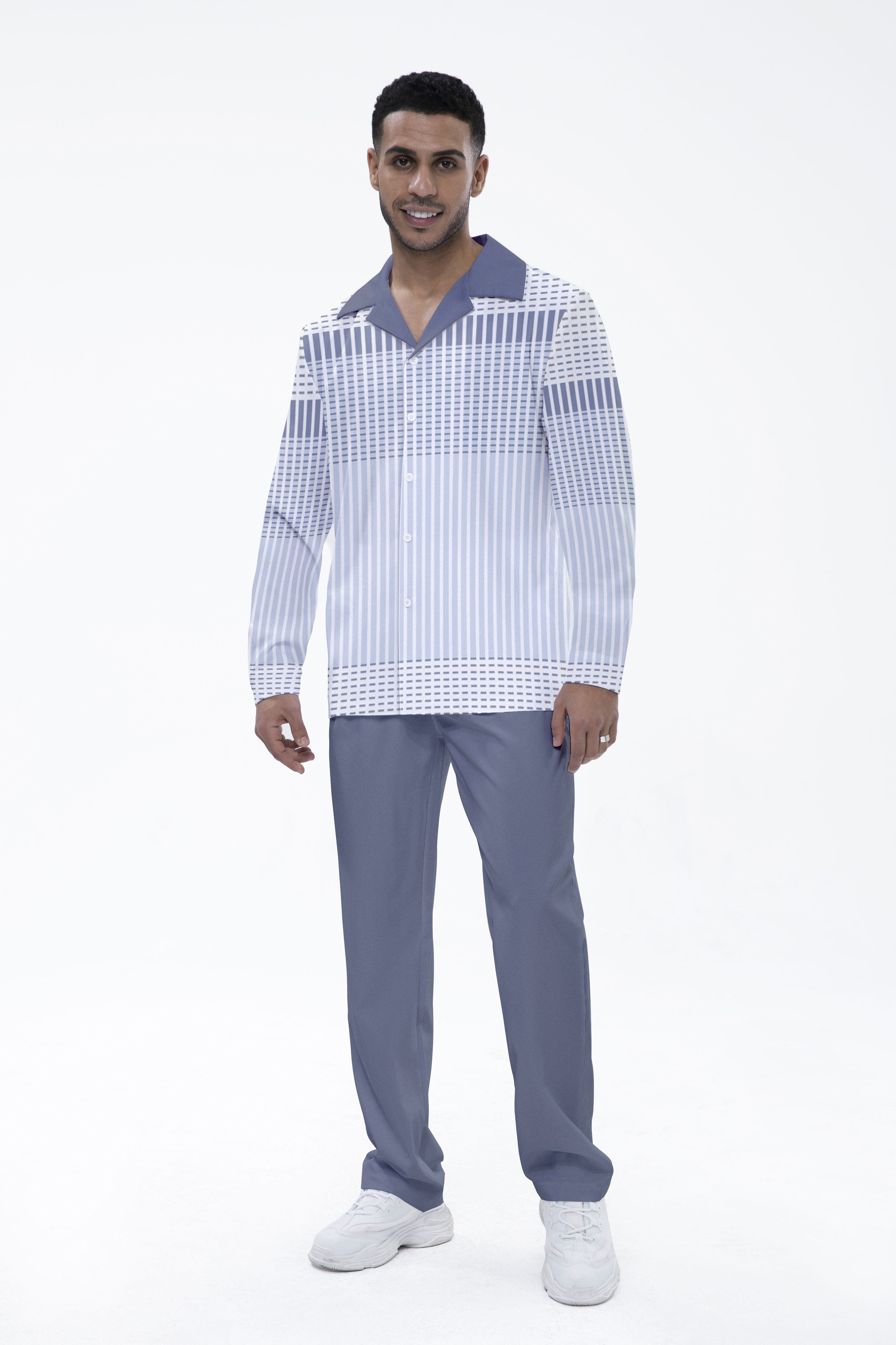 Suitmens Grey Gradient Long Sleeve Trousers Two-Piece Walking Set