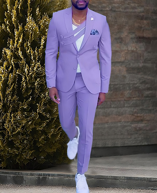 Fashion Plain Pocket Lapel Collar Blazer & Pants 2Pcs Set