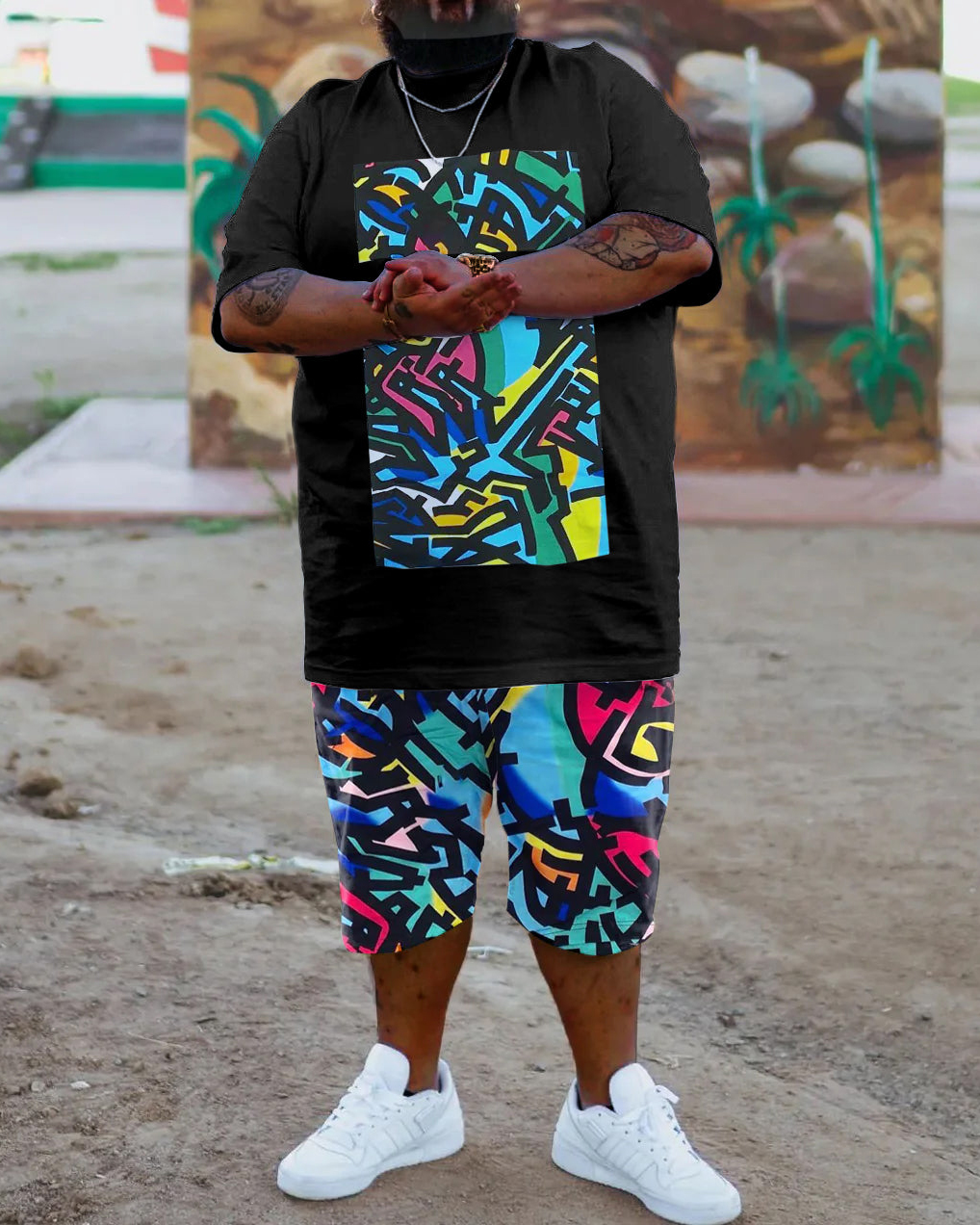 Suitmens Men's Daily Casual 3D Printed Short Sleeve T-Shirt Set 01