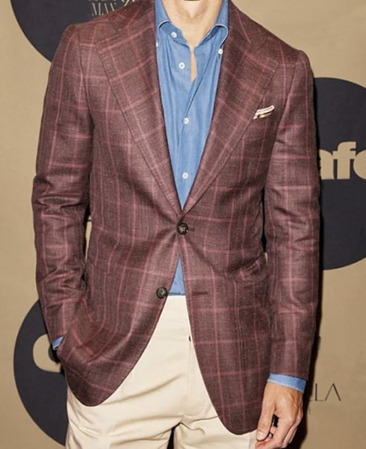 OK Casual Plaid Lapel Collar Slim Fit Blazer & Pants 2Pcs Set