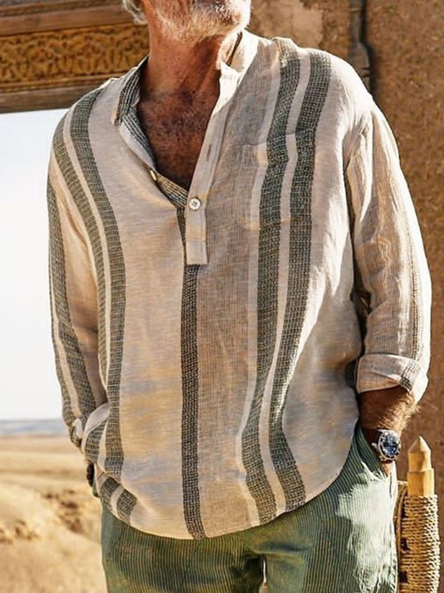 Men Striped Casual Spring/Fall Polyester Holiday Regular Fit Long sleeve Regular H-Line Casual Shirts